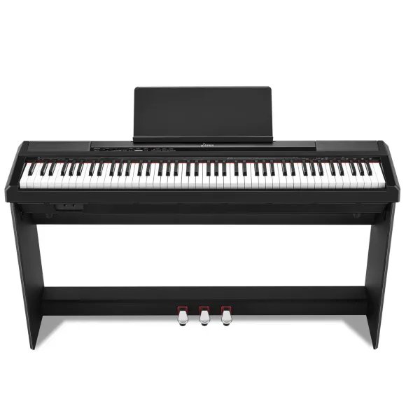 - Mit Ständer und 3 professionellen Pedalen (Soft, Sustain, Sostenuto)